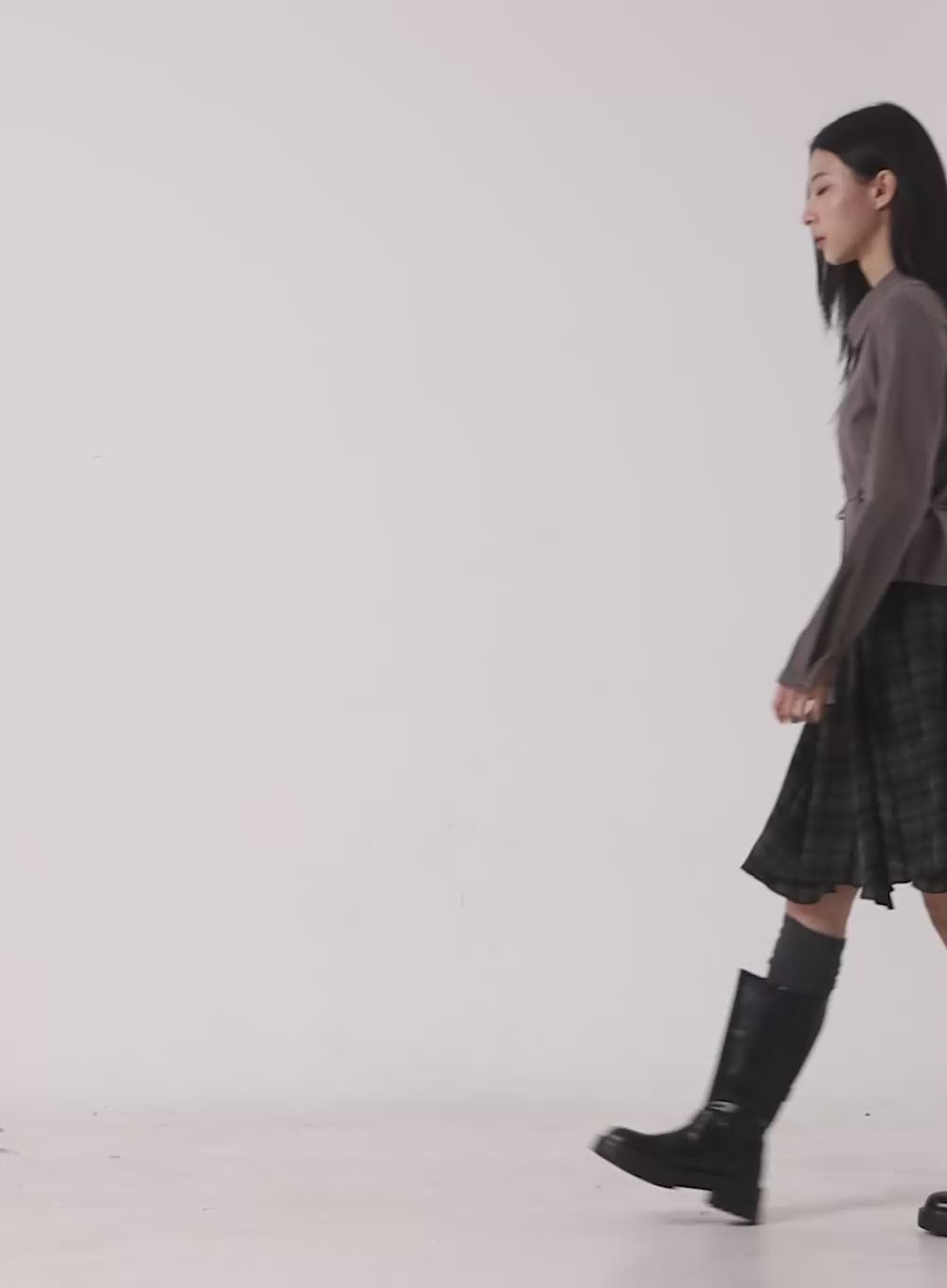 double-belt-pleated-mini-skirt-cu506 / Gray