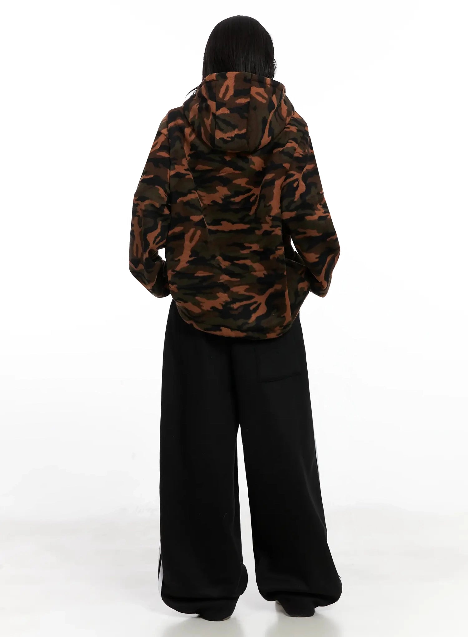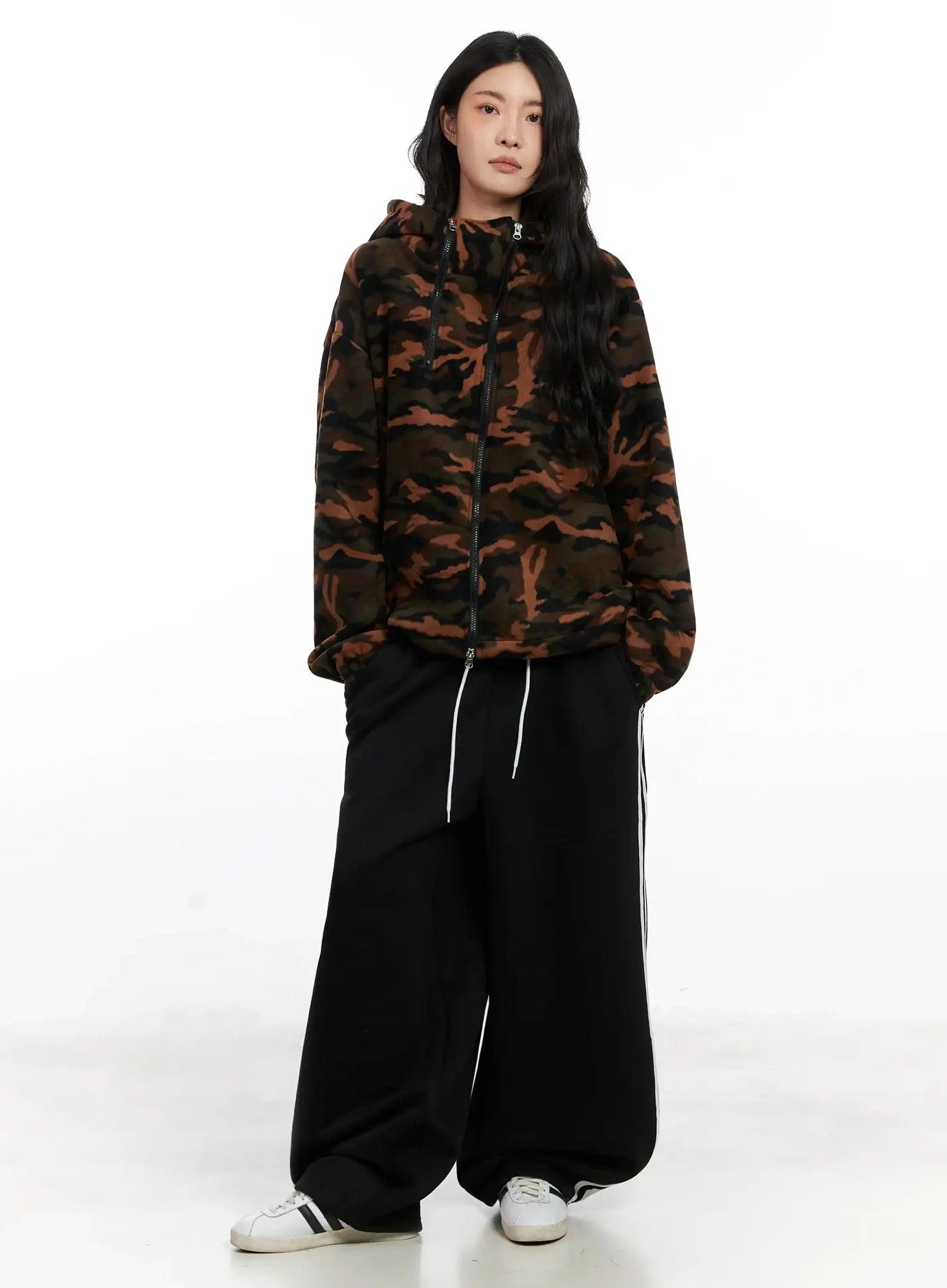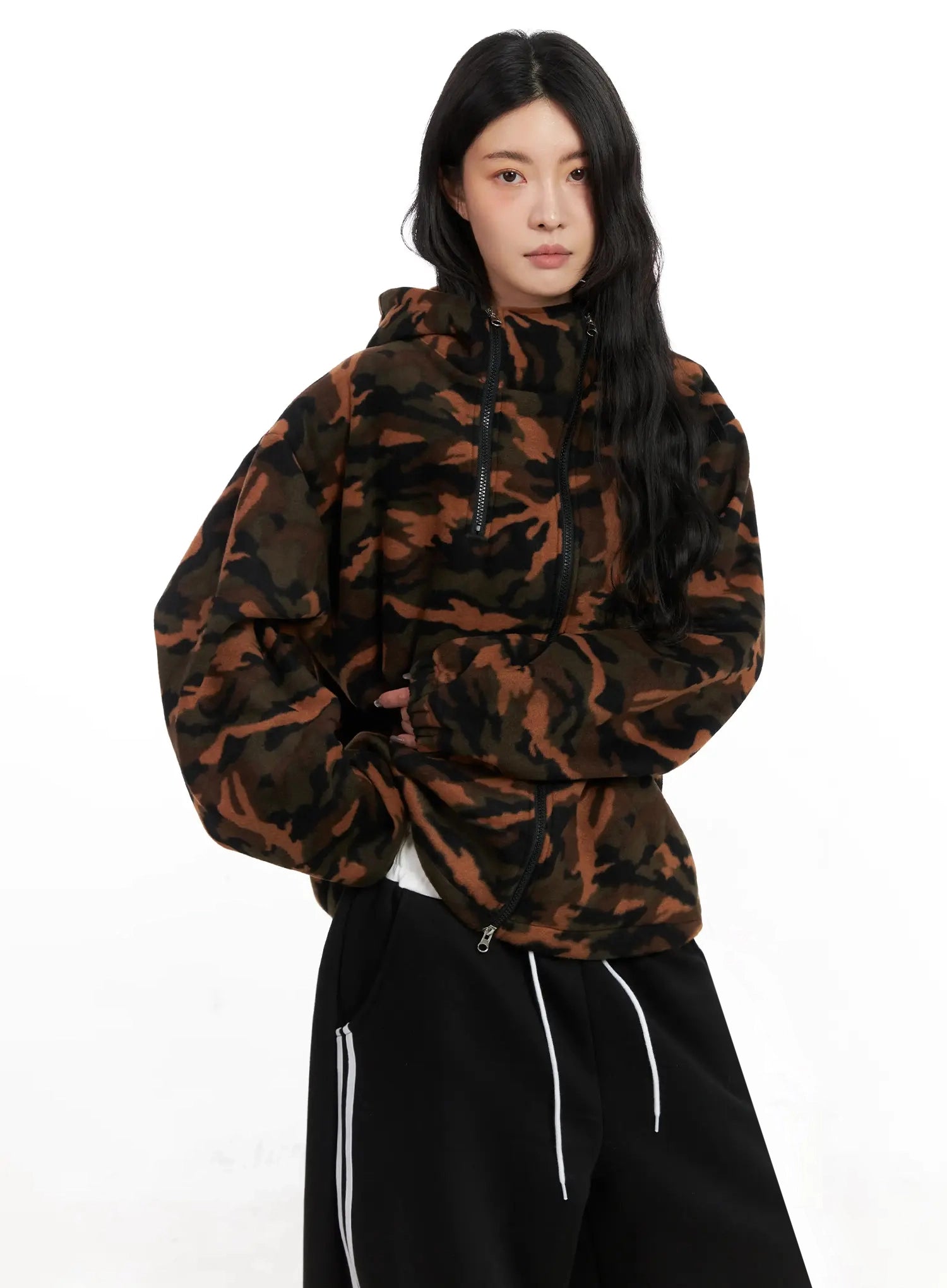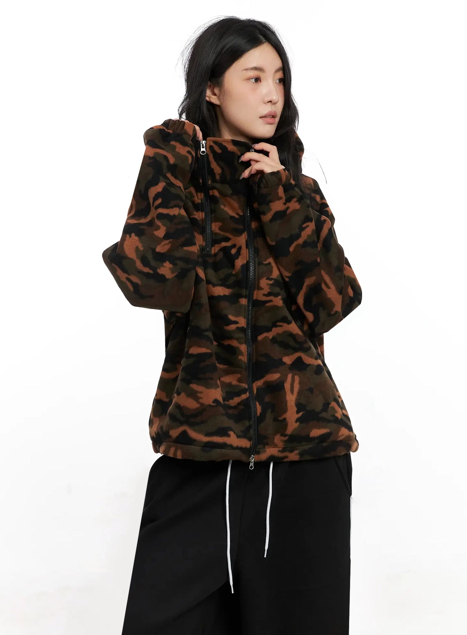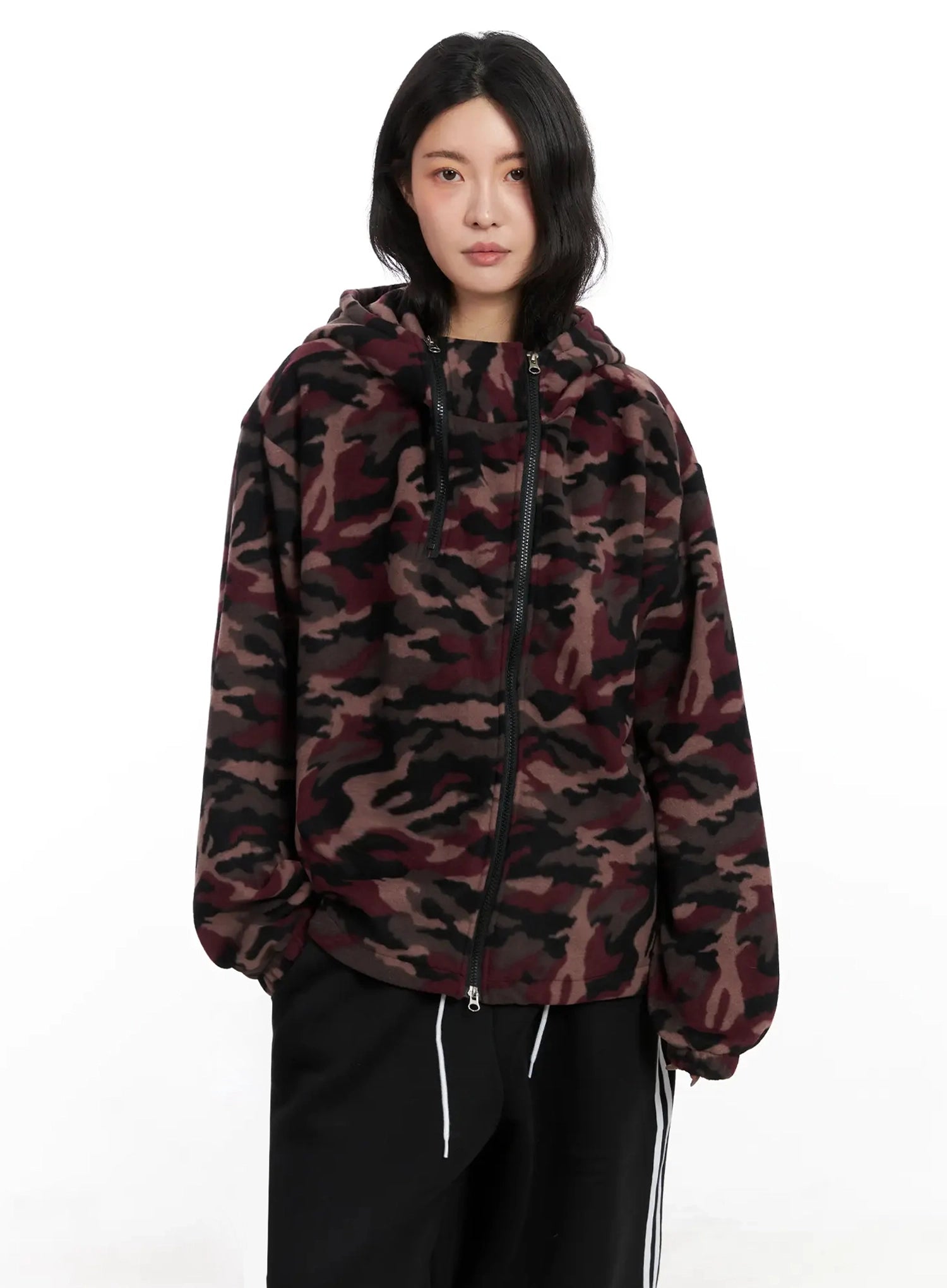 Abstract Print Double-Zip Fleece Hoodie IN528