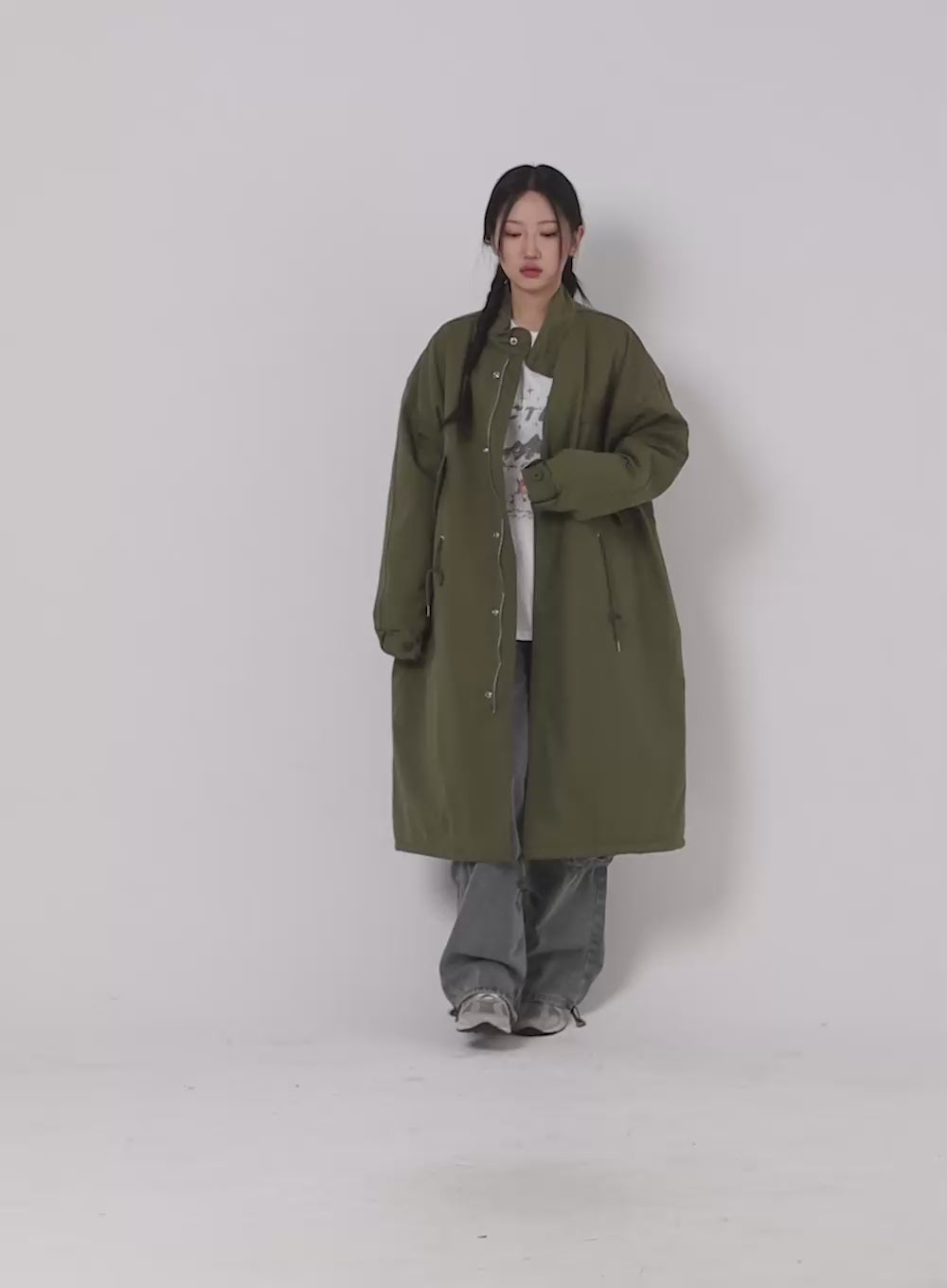 Collar Solid Zipper Drawstring Long Jacket CD328