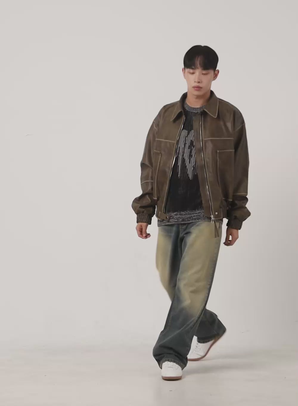 Men's Washed Vintage Zip-Up Leather Jacket IS413