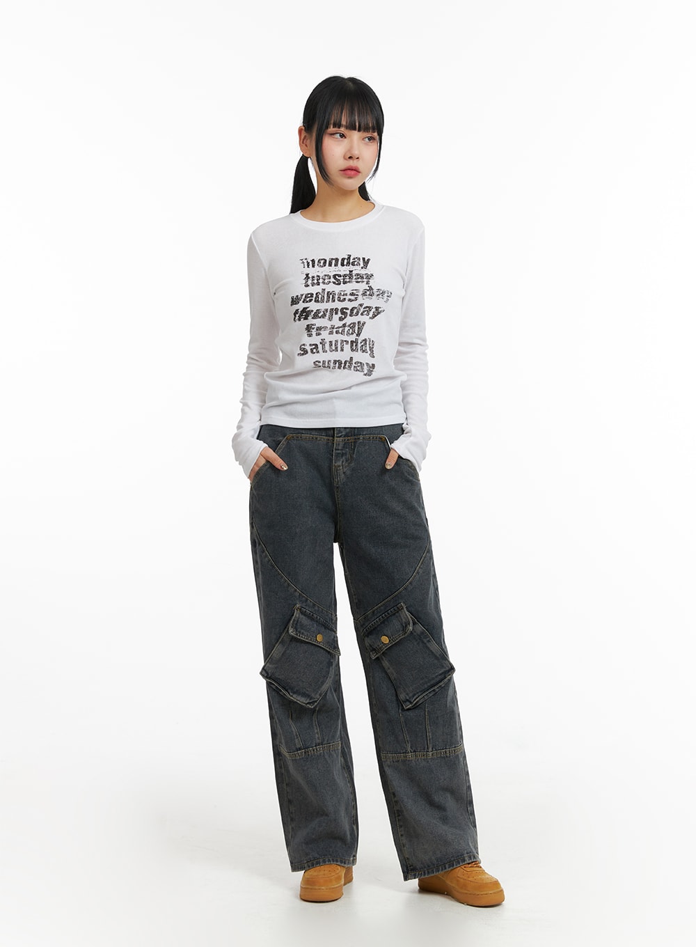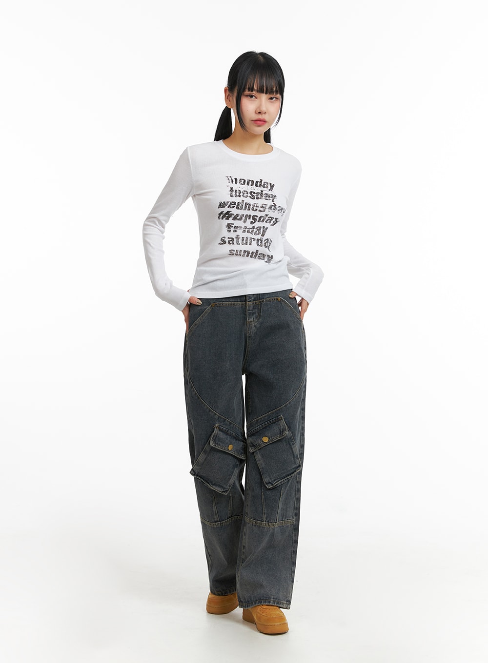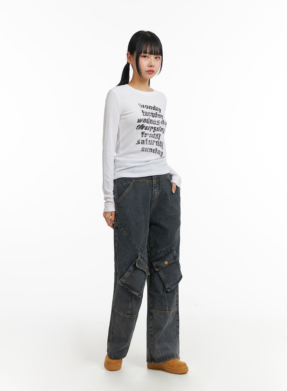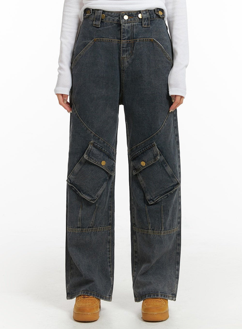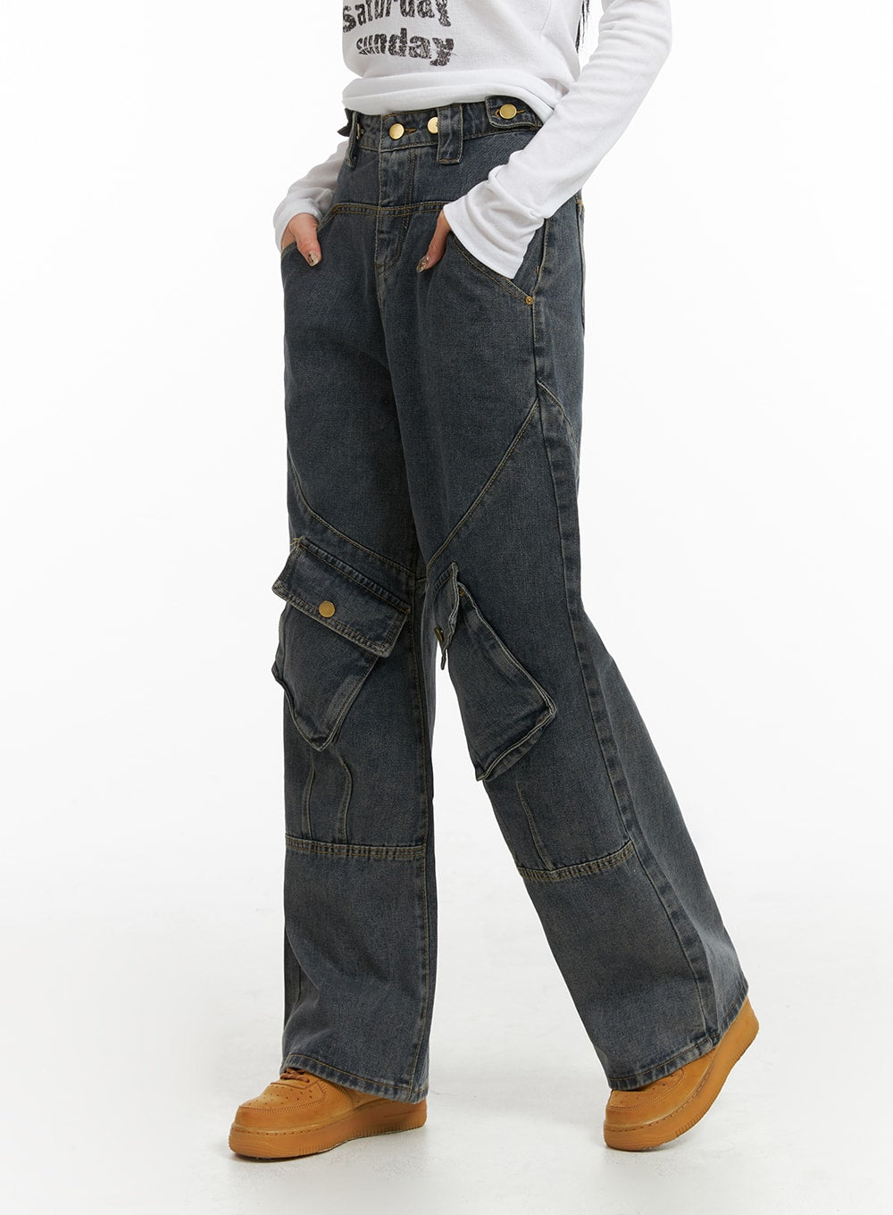 Mid Waist Cargo Jeans CJ411