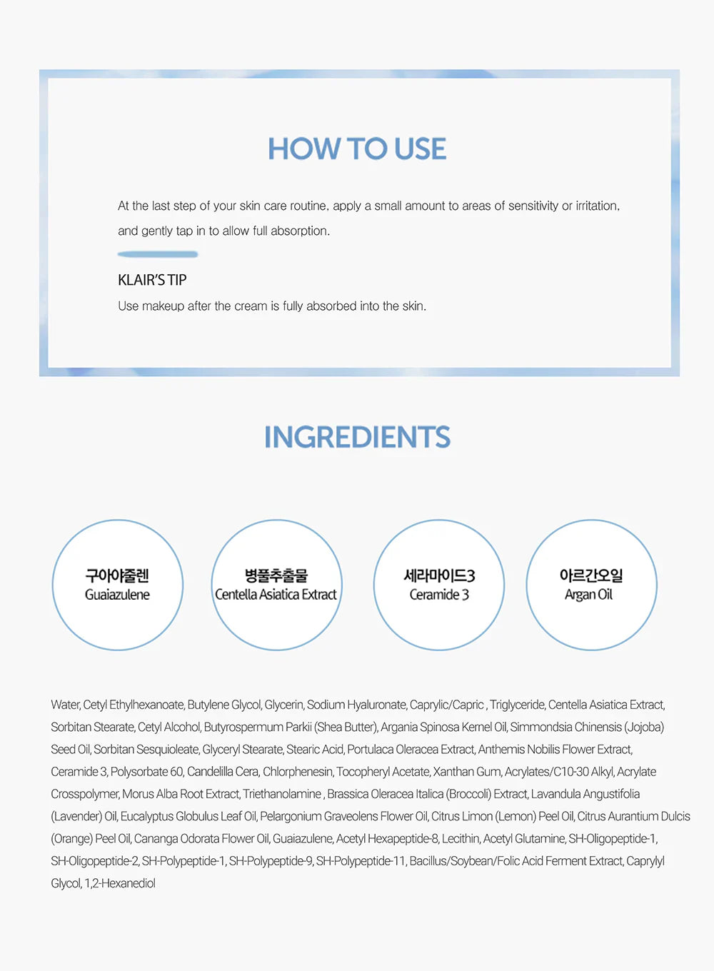 Water, Cetyl Ethylhexanoate, Butylene Glycol, Glycerin, Sodium Hyaluronate, Caprylic/Capric Triglyceride, Centella Asiatica Extract, Sorbitan Stearate, Cetyl Alcohol, Butyrospermum Parkii (Shea Butter), Argania Spinosa Kernel Oil, Simmondsia Chinensis (Jojoba) Seed Oil, Sorbitan Sesquioleate, Glyceryl Stearate, Stearic Acid, Portulaca Oleracea Extract, Anthemis Nobilis Flower Extract, Ceramide 3, Polysorbate 60, Candelilla Cera, Chlorphenesin, Tocopheryl Acetate, Xanthan Gum, Acrylates/C10-30 Alkyl Acrylate Crosspolymer, Morus Alba Root Extract, Triethanolamine, Brassica Oleracea Italica (Broccoli) Extract, Lavandula Angustifolia (Lavender) Oil, Eucalyptus Globulus Leaf Oil, Pelargonium Graveolens Flower Oil, Citrus Limon (Lemon) Peel Oil, Citrus Aurantium Dulcis (Orange) Peel Oil, Cananga Odorata Flower Oil, Guaiazulene, Acetyl Hexapeptide-8, Lecithin, Acetyl Glutamine, SH-Oligopeptide-1, SH-Oligopeptide-2, SH-Polypeptide-1, SH-Polypeptide-9, SH-Polypeptide-11, Bacillus/Soybean/Folic Acid Ferment Extract, Caprylyl Glycol, 1,2-Hexanediol