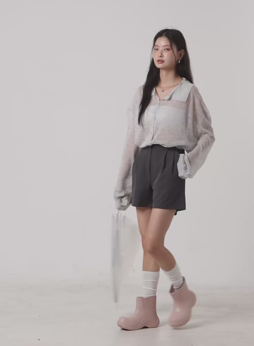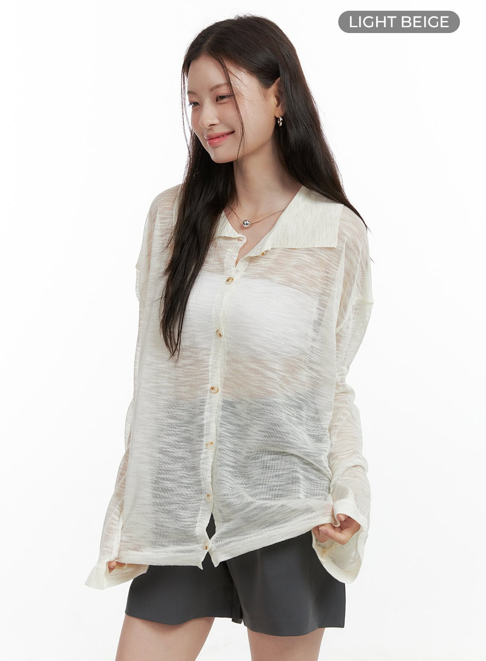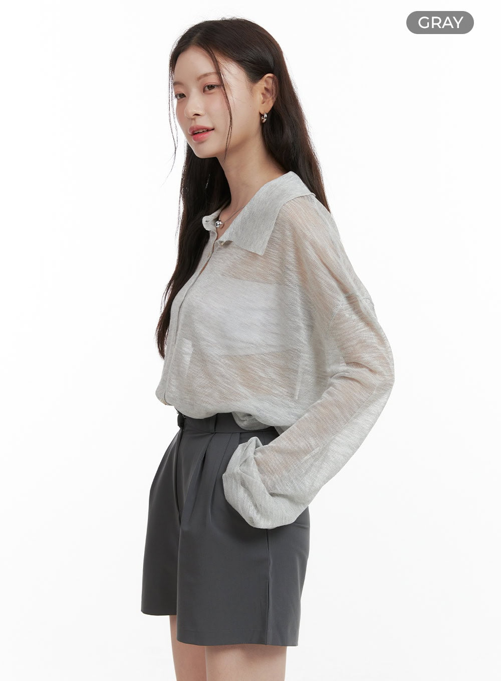 Sheer Button Collar Long Sleeve OL416