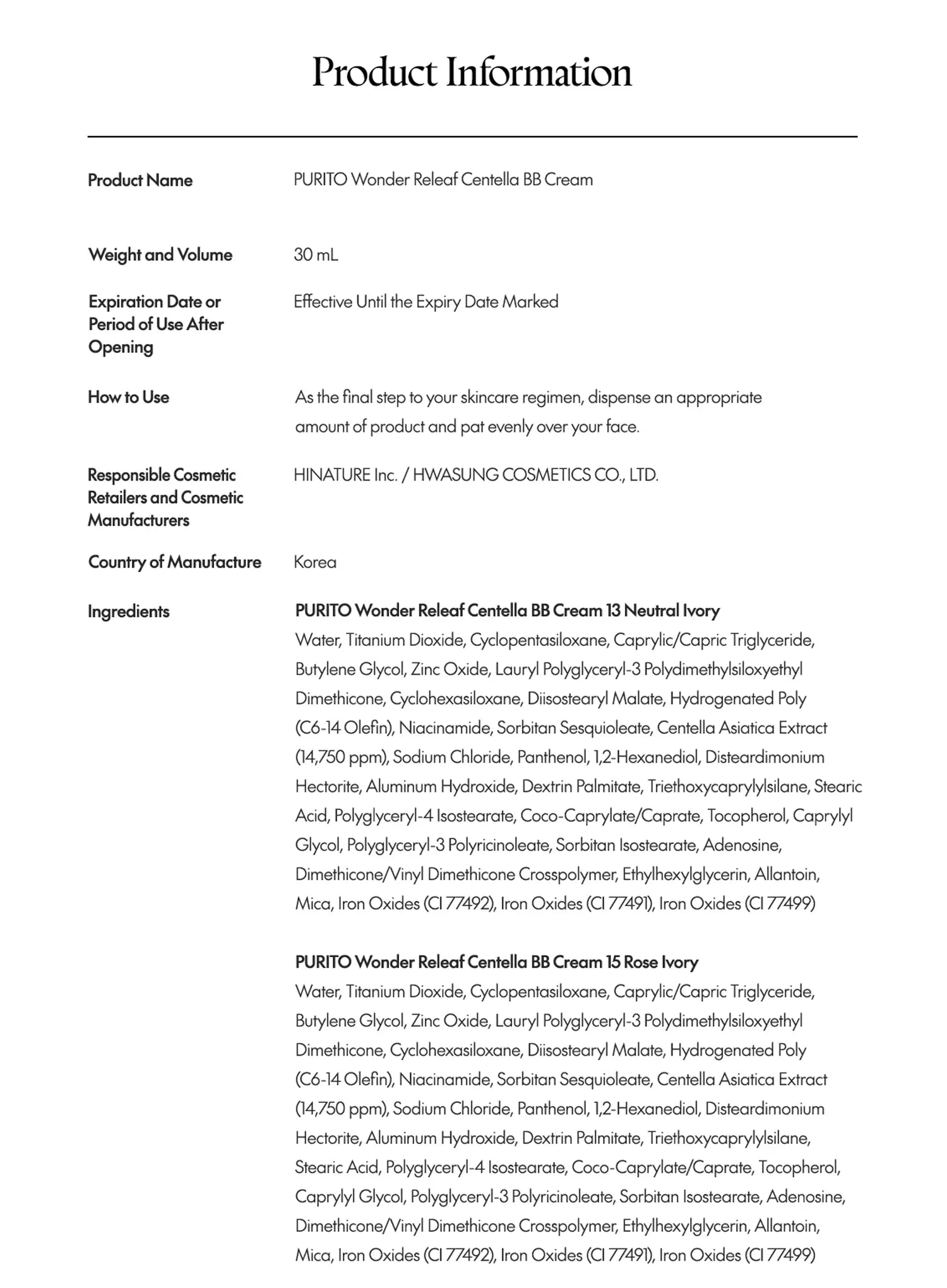 We are an authorized retailer of PURITO SEOUL