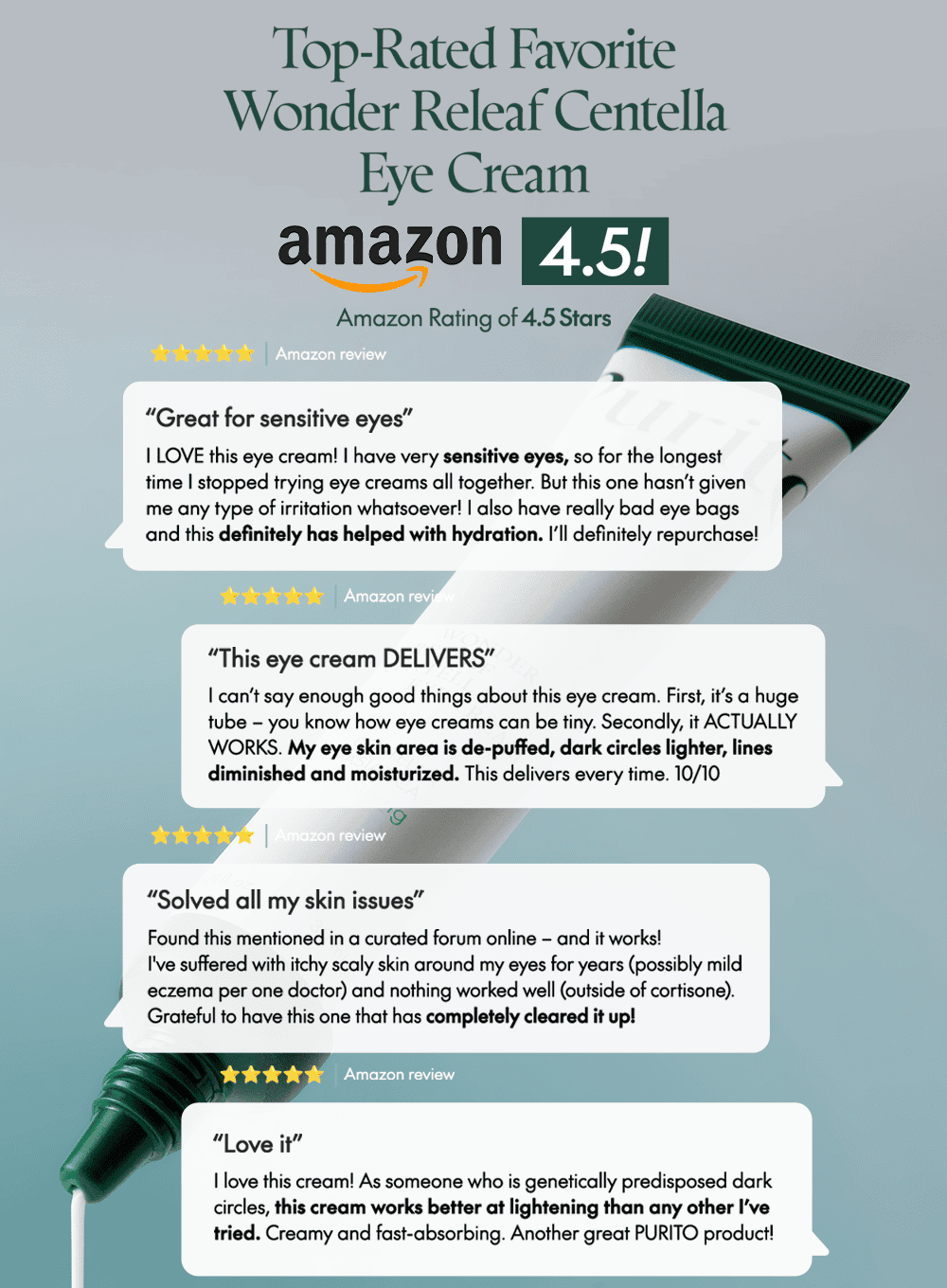 Unscented eye cream that rapidly soothes and hydrates with Centella.